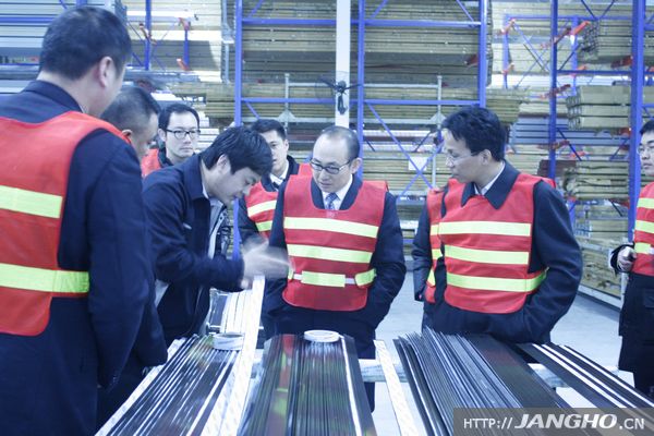 隨后,潘董事長一行與公司劉董事長等高層領(lǐng)導進行了親切友好的座談。座談結(jié)束后,考察組一行在劉董事長的陪同下,前往江河幕墻建成并投產(chǎn)的全球幕墻行業(yè)最大的單體幕墻制造工廠。在國際一流、國內(nèi)領(lǐng)先的現(xiàn)代化工廠內(nèi),潘董事長一行細致考察了江河幕墻行業(yè)領(lǐng)先的技術(shù)設(shè)備、倉儲車間、自動化流水線及成品包裝養(yǎng)護等,對部分江河幕墻獨創(chuàng)的技術(shù)工藝進行了仔細詢問并觀看了技術(shù)人員的現(xiàn)場精密測試。參觀過程中,潘董事長屢次對江河幕墻的工廠布局、技術(shù)設(shè)備、制造工藝等展露出贊賞的笑容。